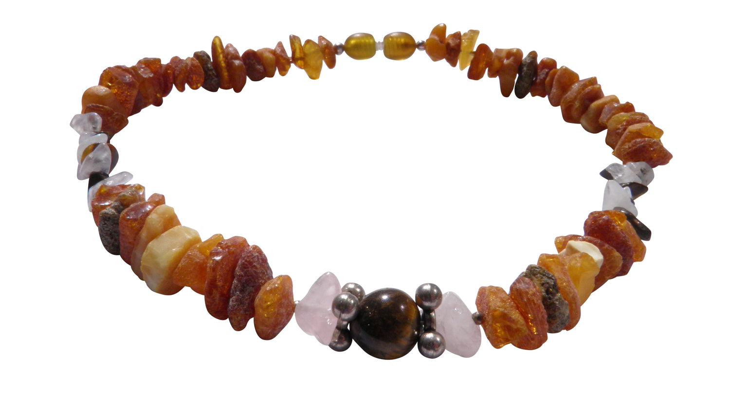 🐾 AMBERDOG – BERNSTEINKETTE MIT ROSENQUARZ & TIGERAUGE
